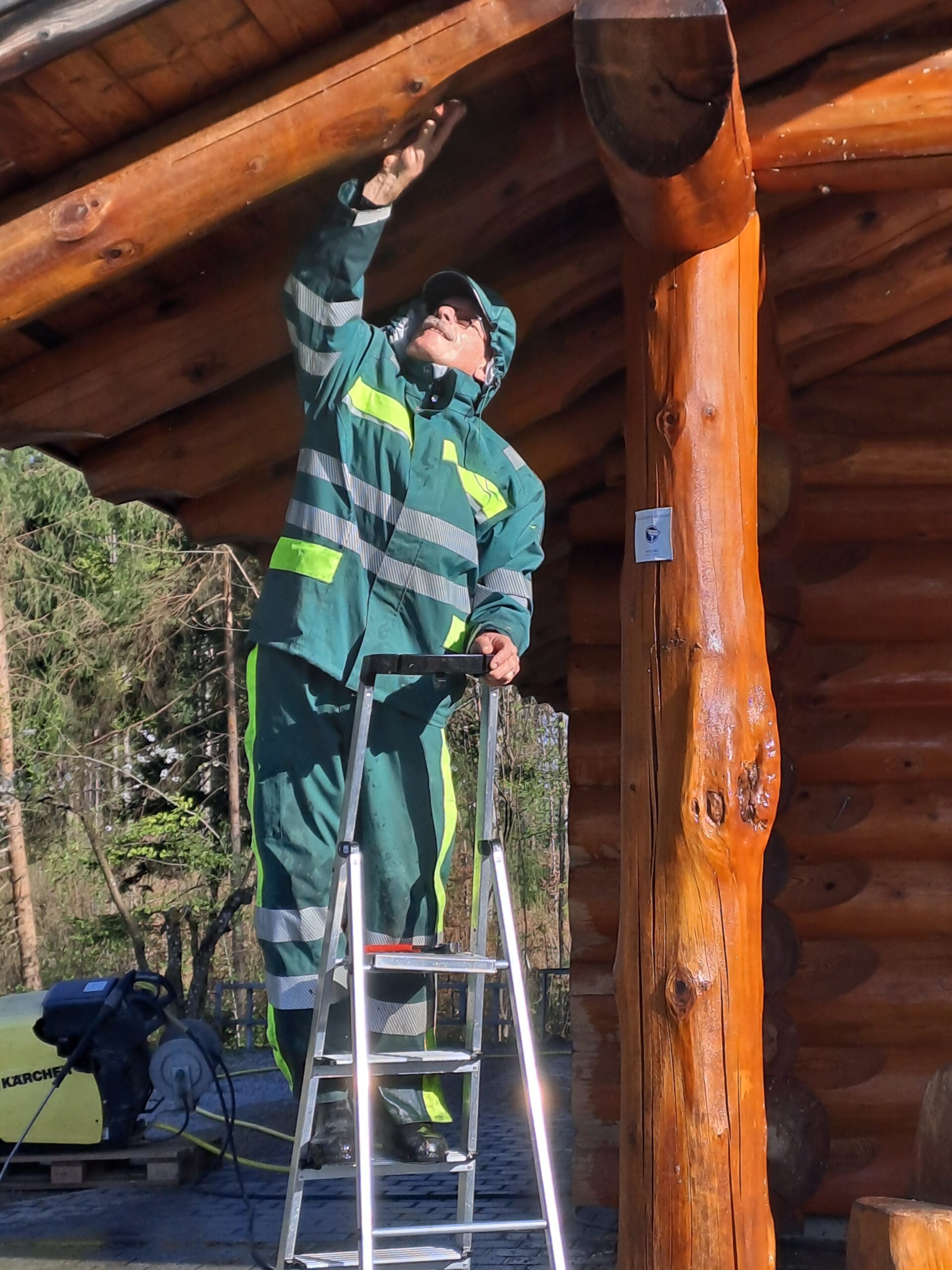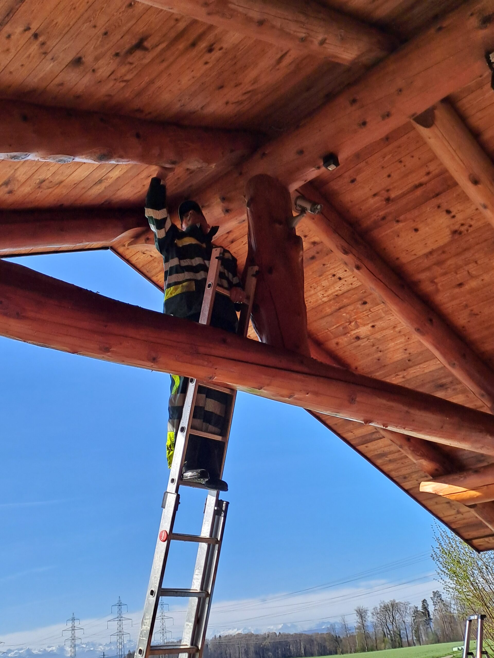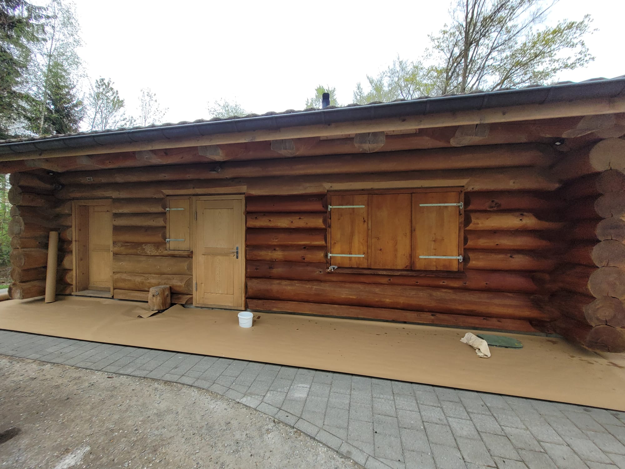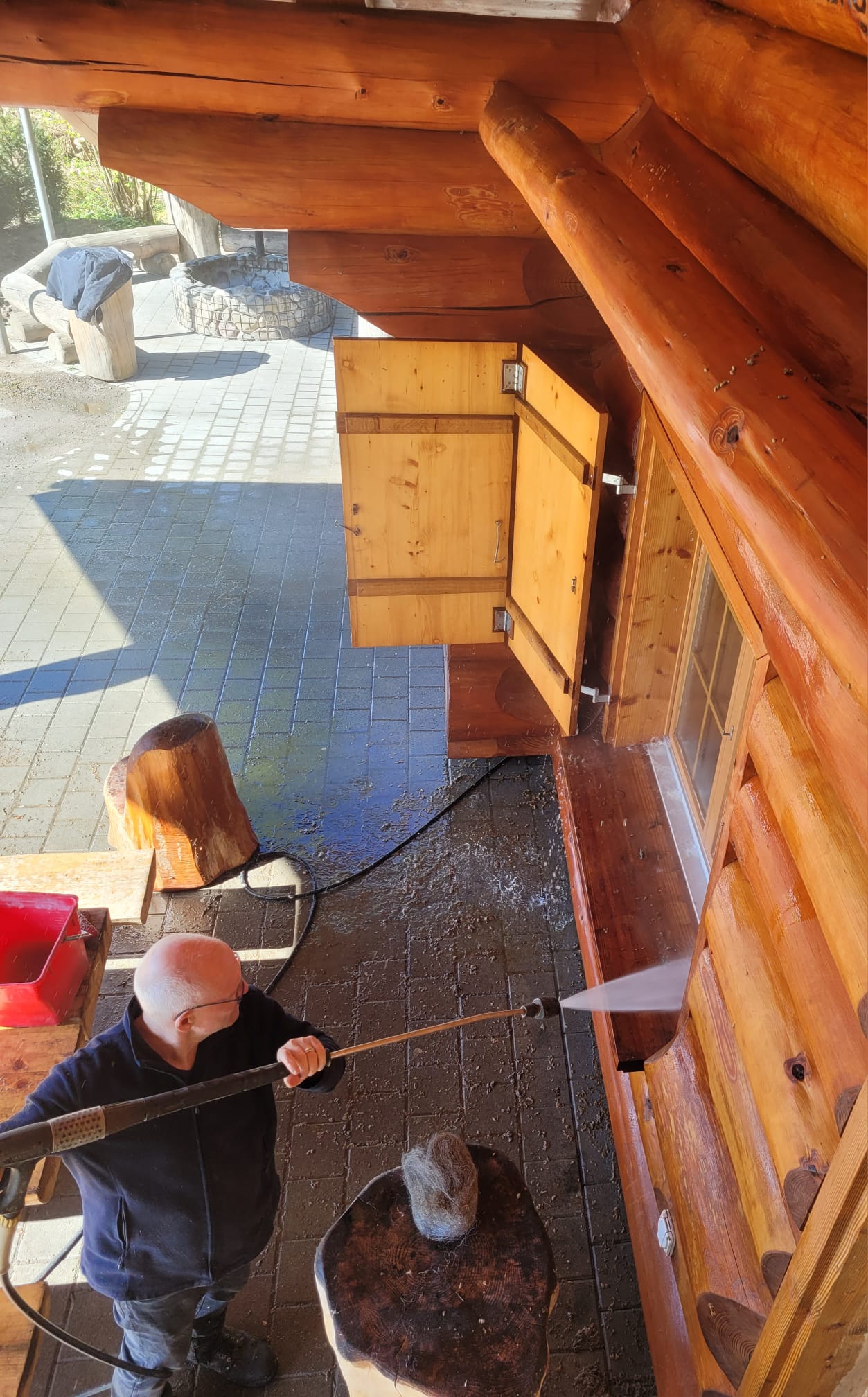 Neben dem Holzaufrüsten wurde für einen besseren Rauchabzug bei der Feuerstelle……