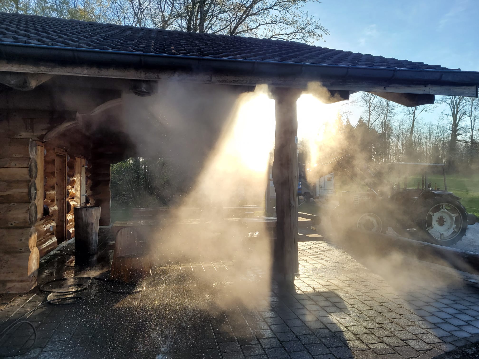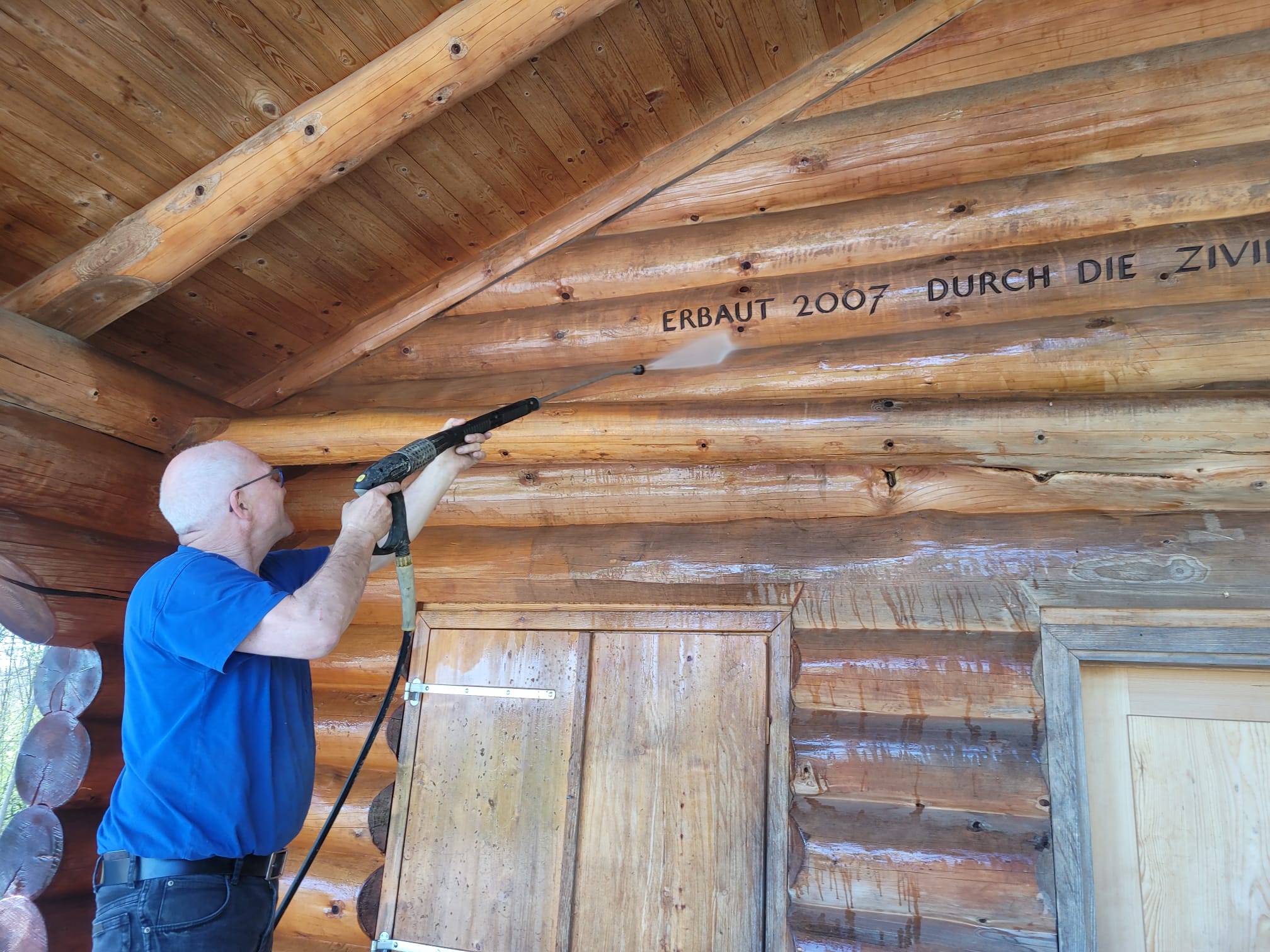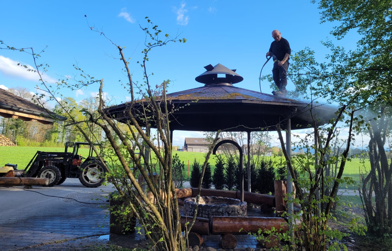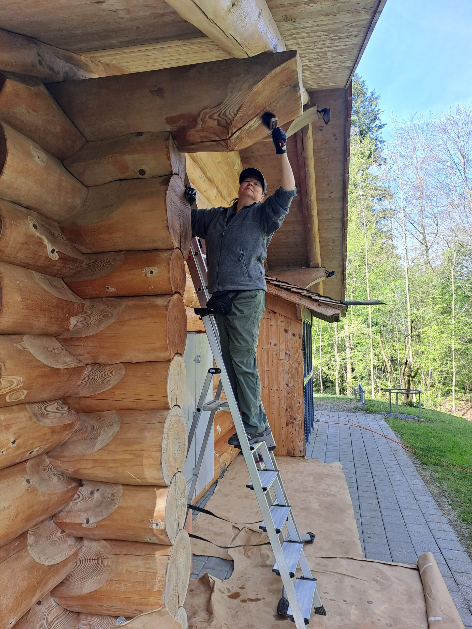 Neben dem Holzaufrüsten wurde für einen besseren Rauchabzug bei der Feuerstelle……