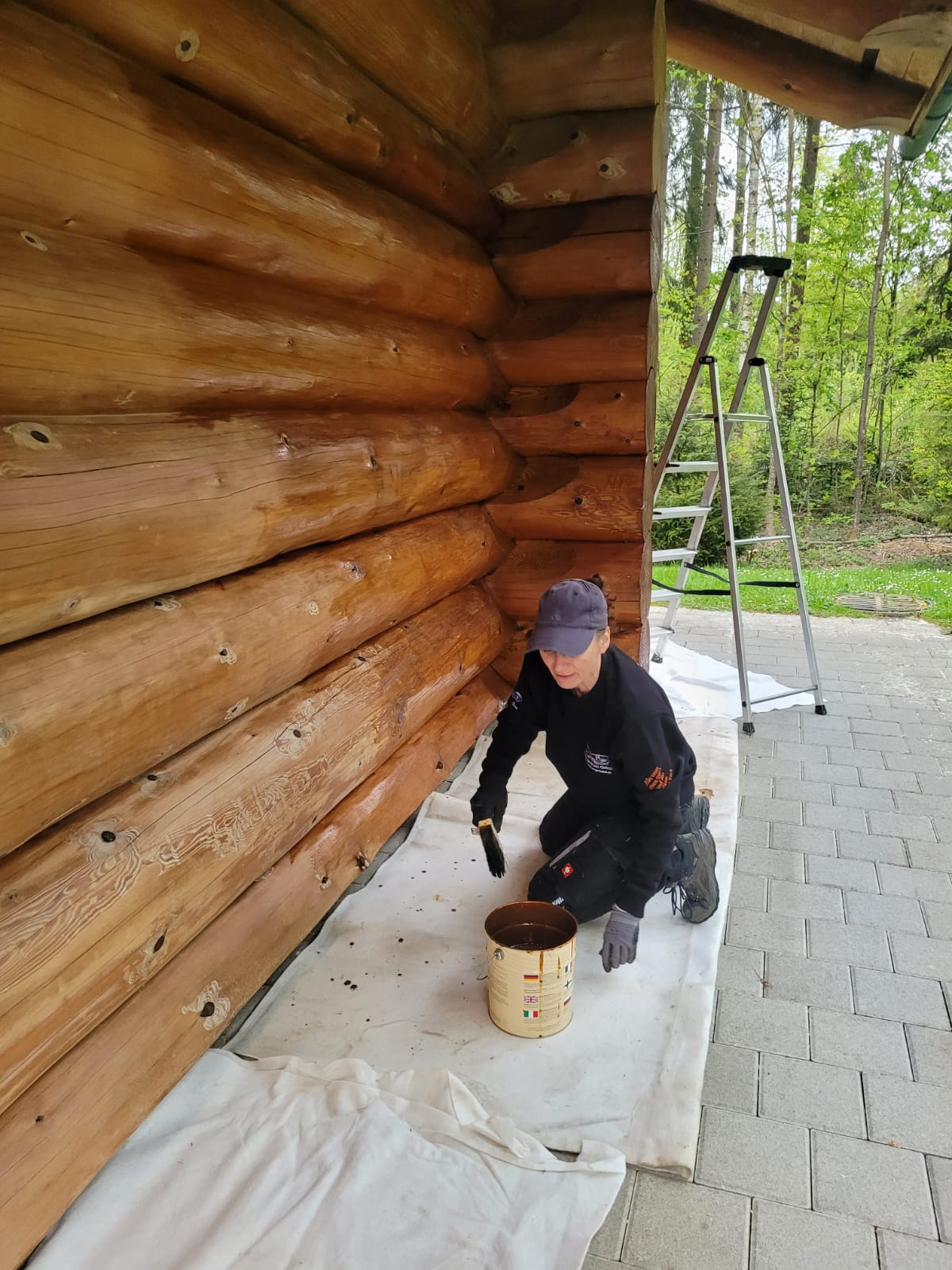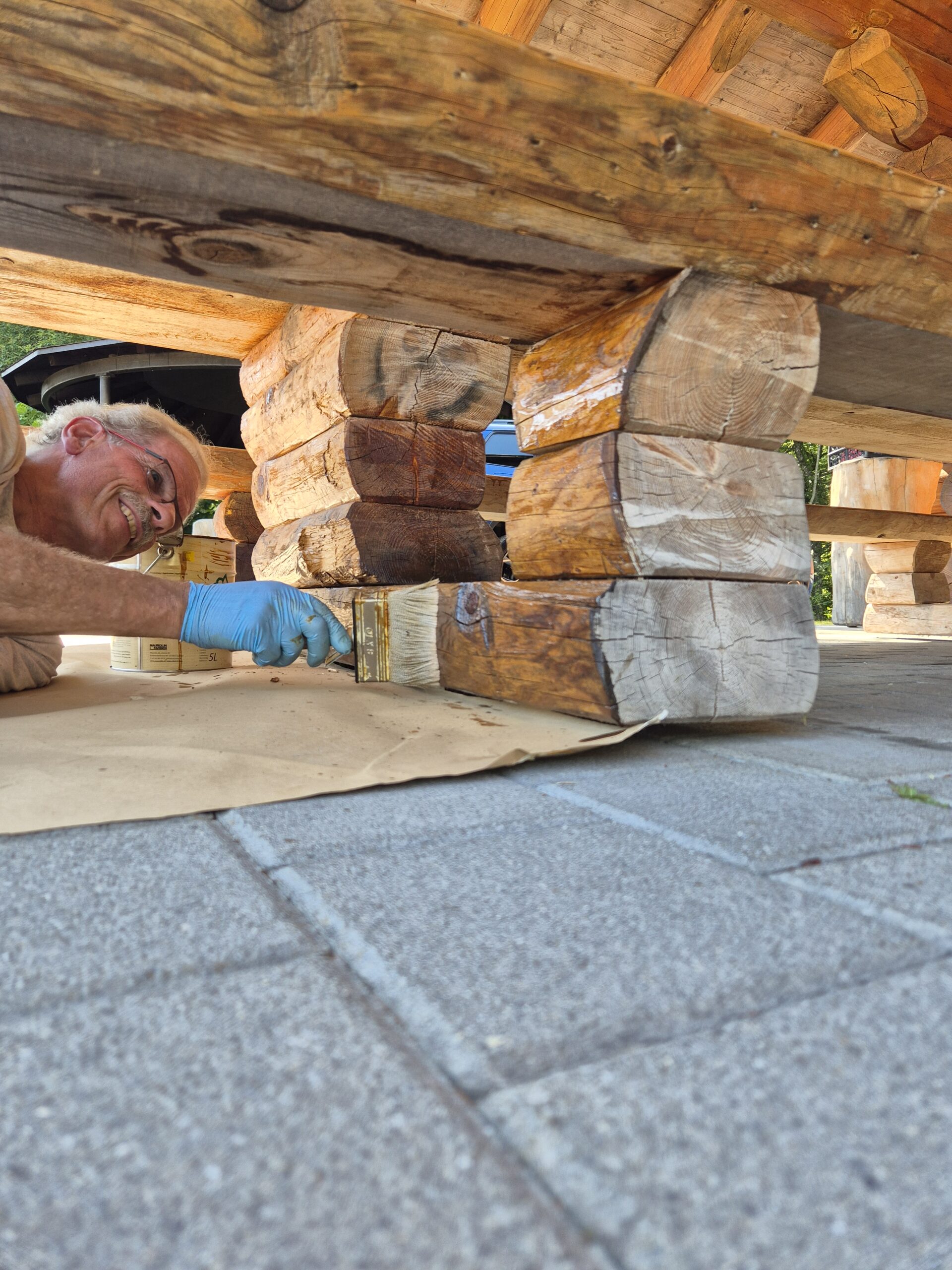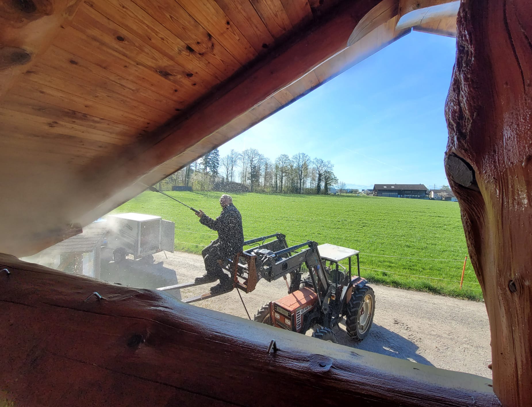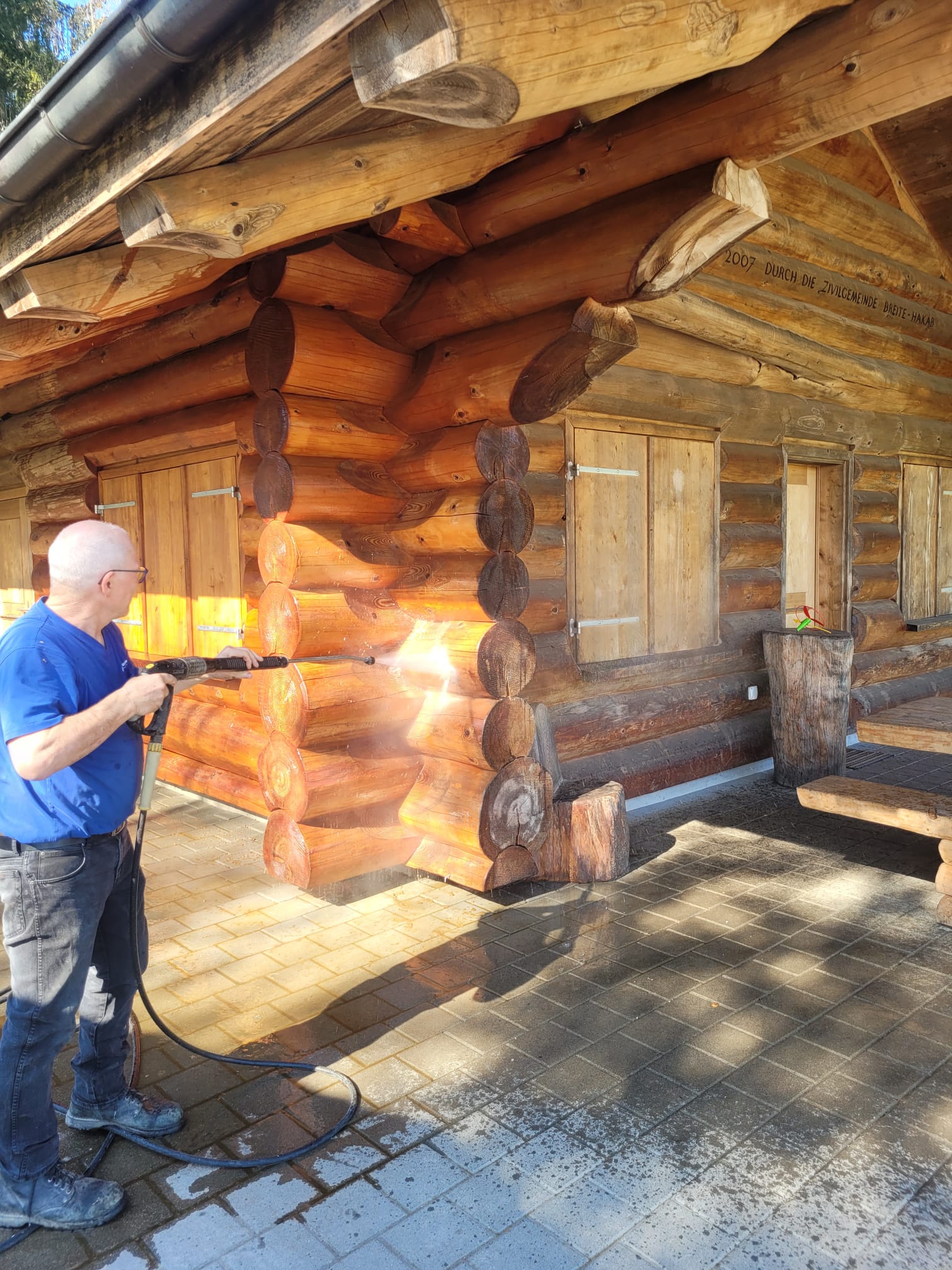 Neben dem Holzaufrüsten wurde für einen besseren Rauchabzug bei der Feuerstelle……