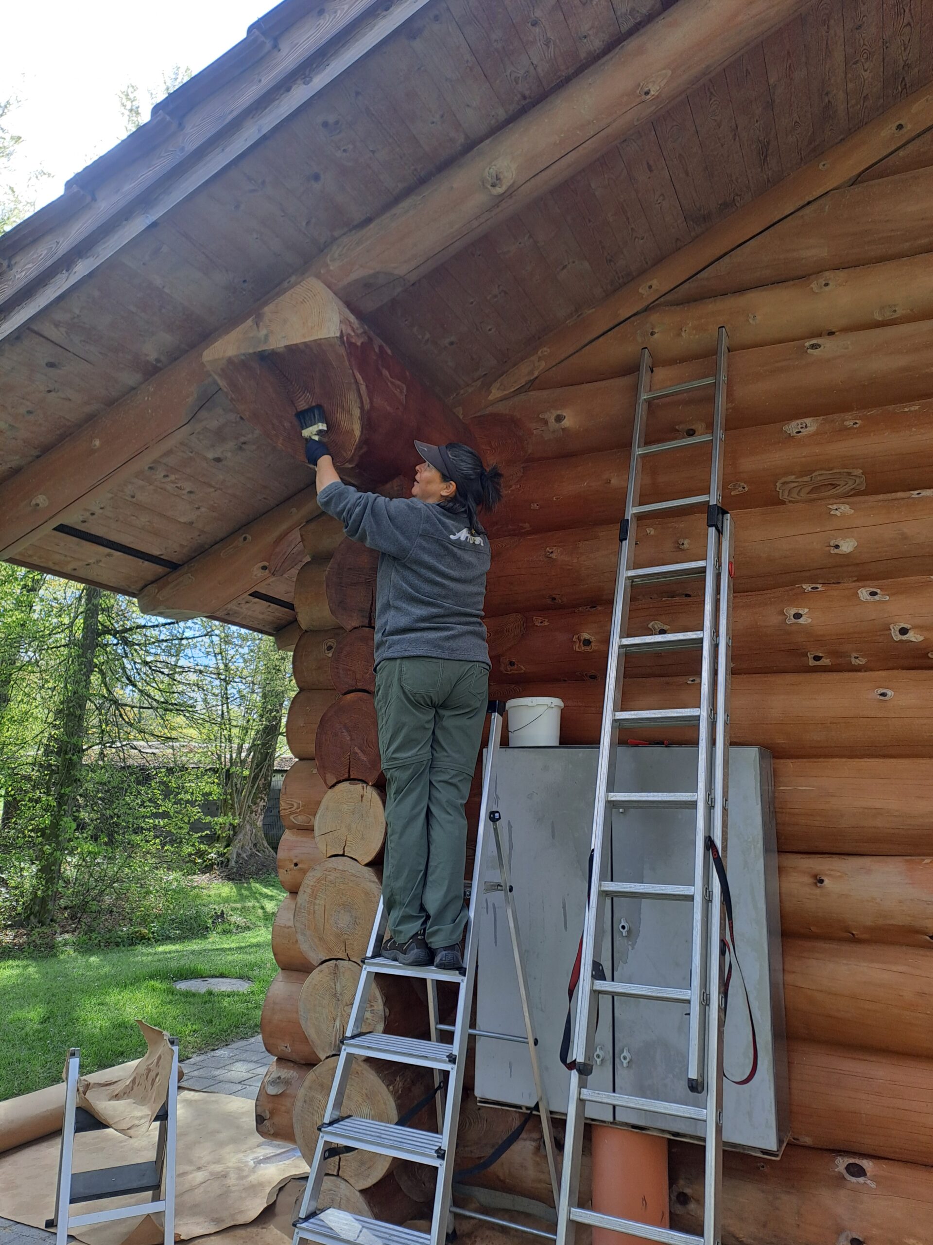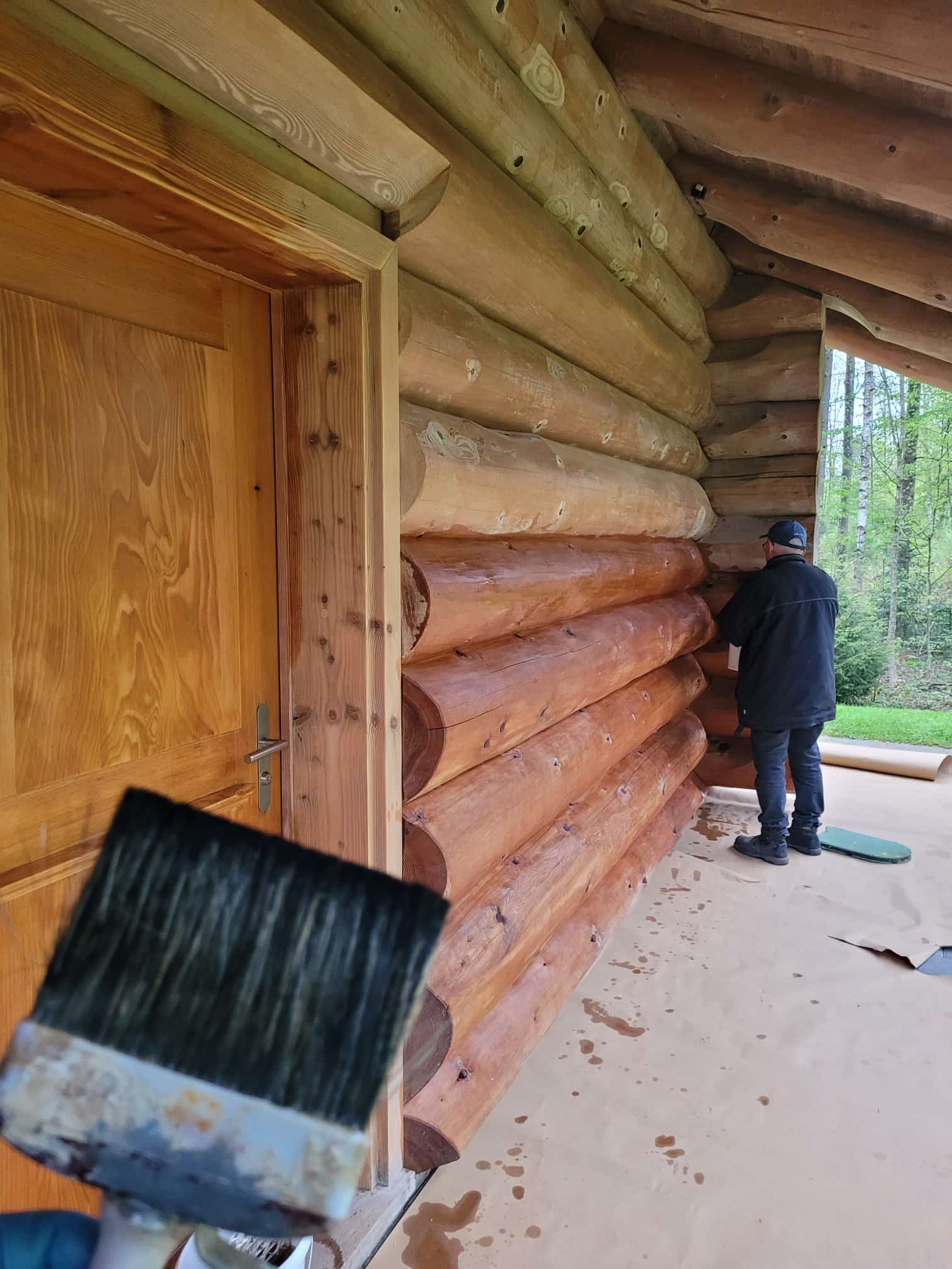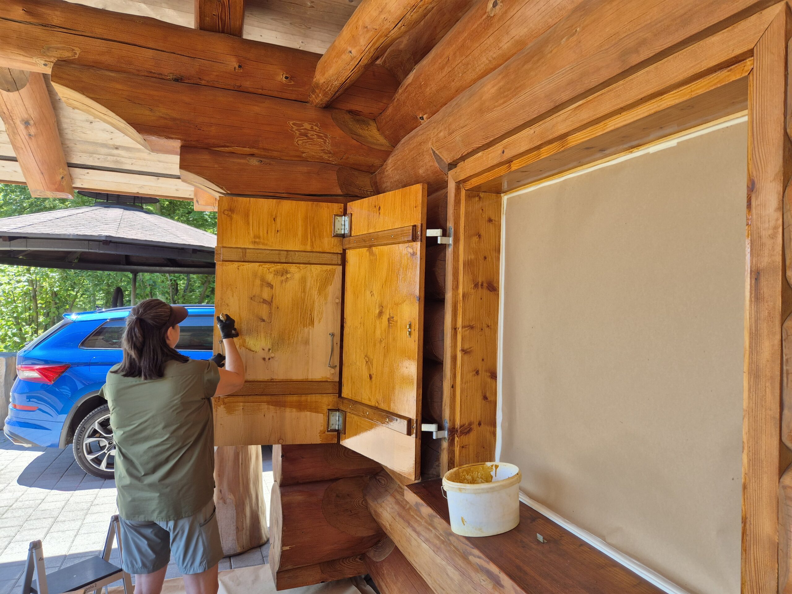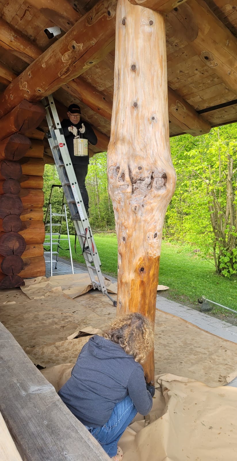 Neben dem Holzaufrüsten wurde für einen besseren Rauchabzug bei der Feuerstelle……